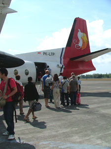 | バリ島 ングラライ空港 今からPelitaAirに乗り込みます。初めてでドキドキ。(2004/3) |