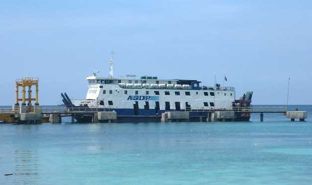 フローレス島 ラブハンバジョー 大型フェリー、アウ号。 これからウジュンパンダンへ行くところです。 |